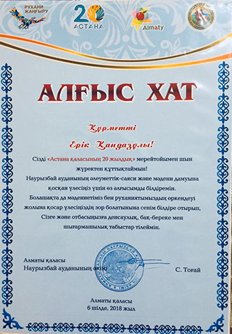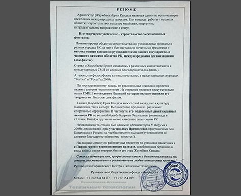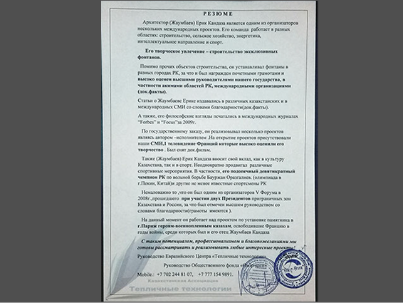Статьи о нём издавались в различных казахстанских и в международных СМИ со словами благодарности. (док.факты).